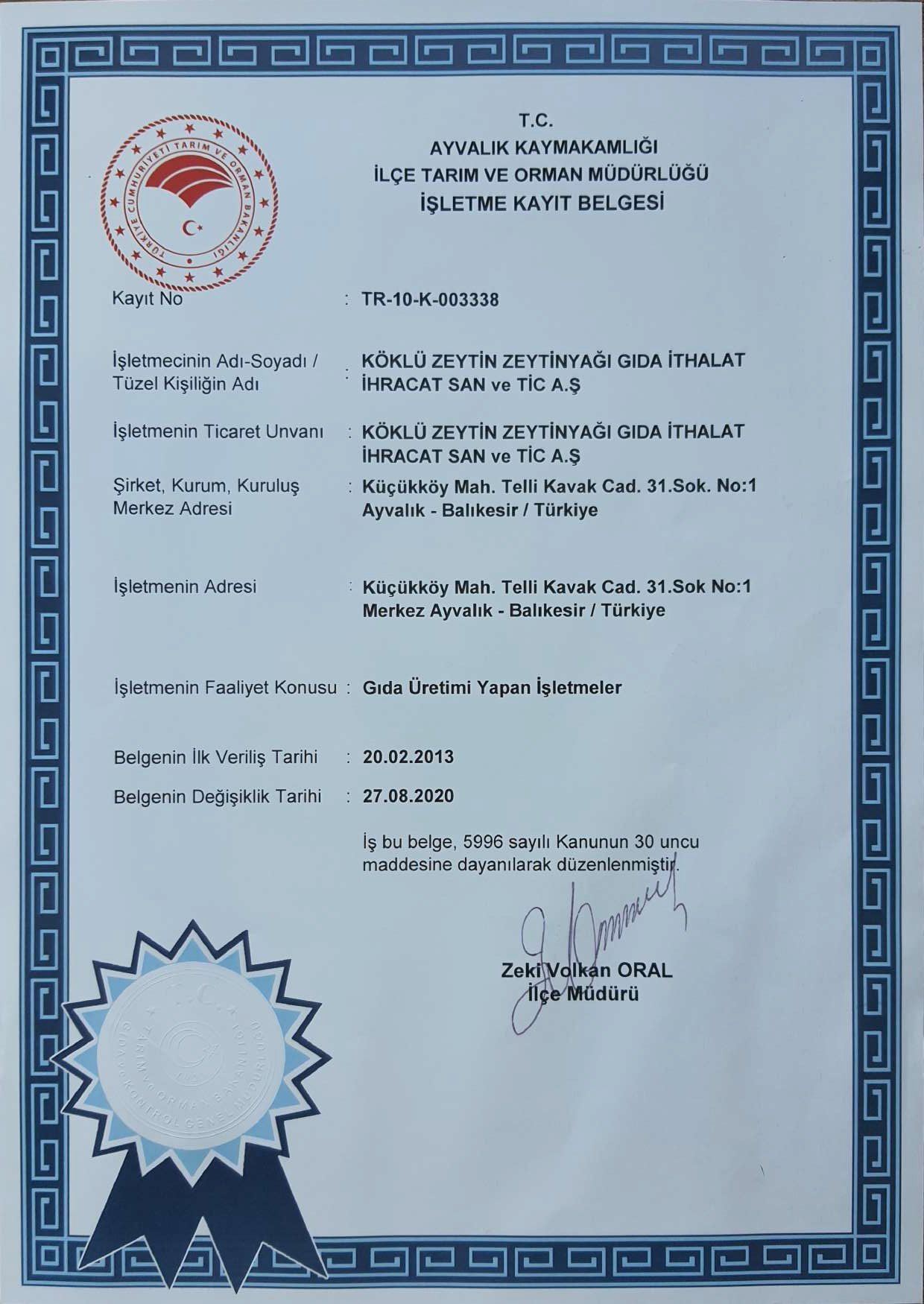 İşletme Kayıt Belgesi